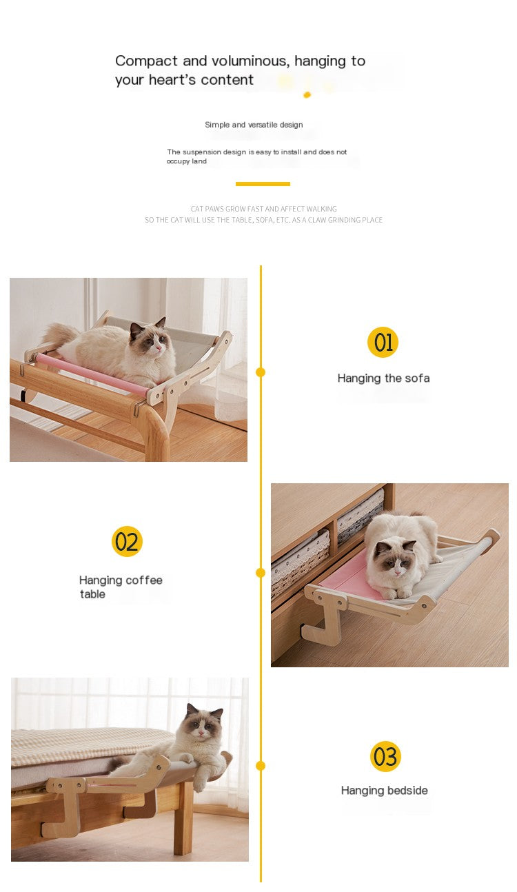 Constructed from premium wood, the hammock ensures durability and stability with its thickened design, making it safe and secure for your pet. Choose from eye-catching colors like Ash Powder, Gray Yellow, or Gray Blue to match your home’s style. 🎨